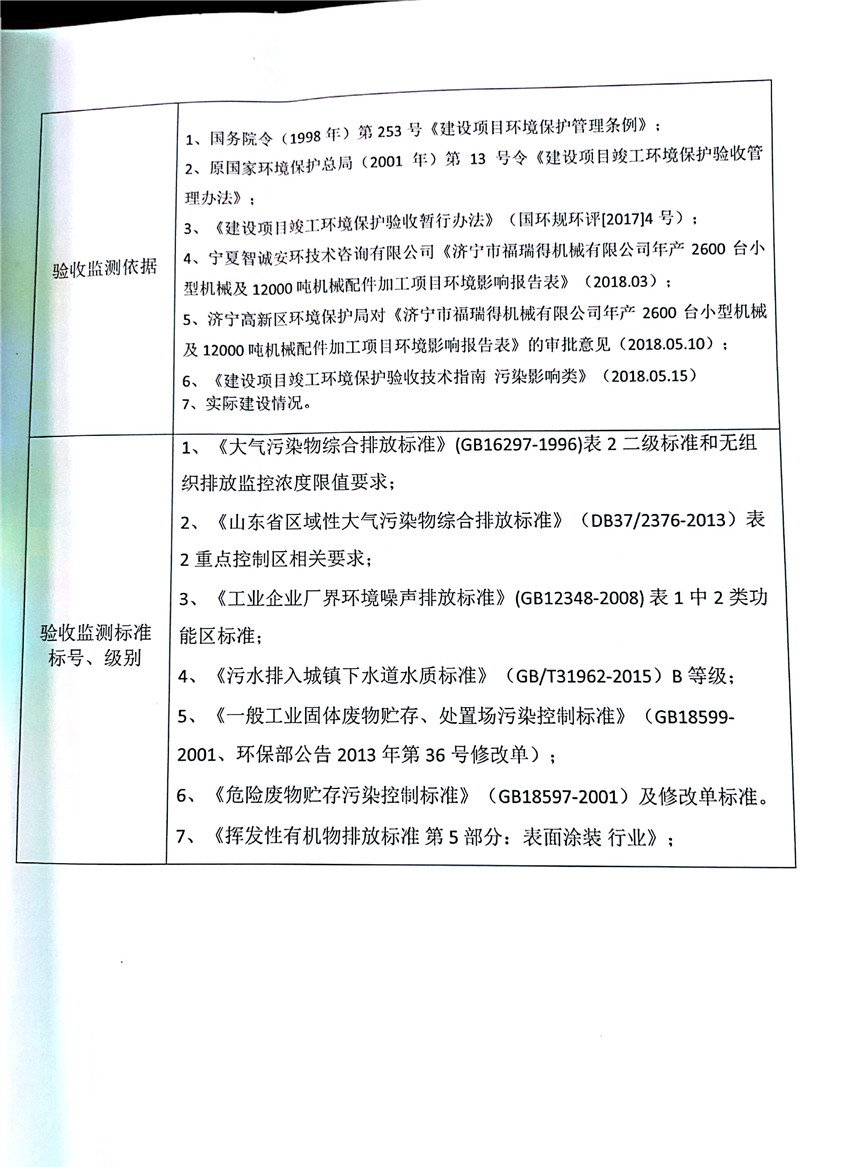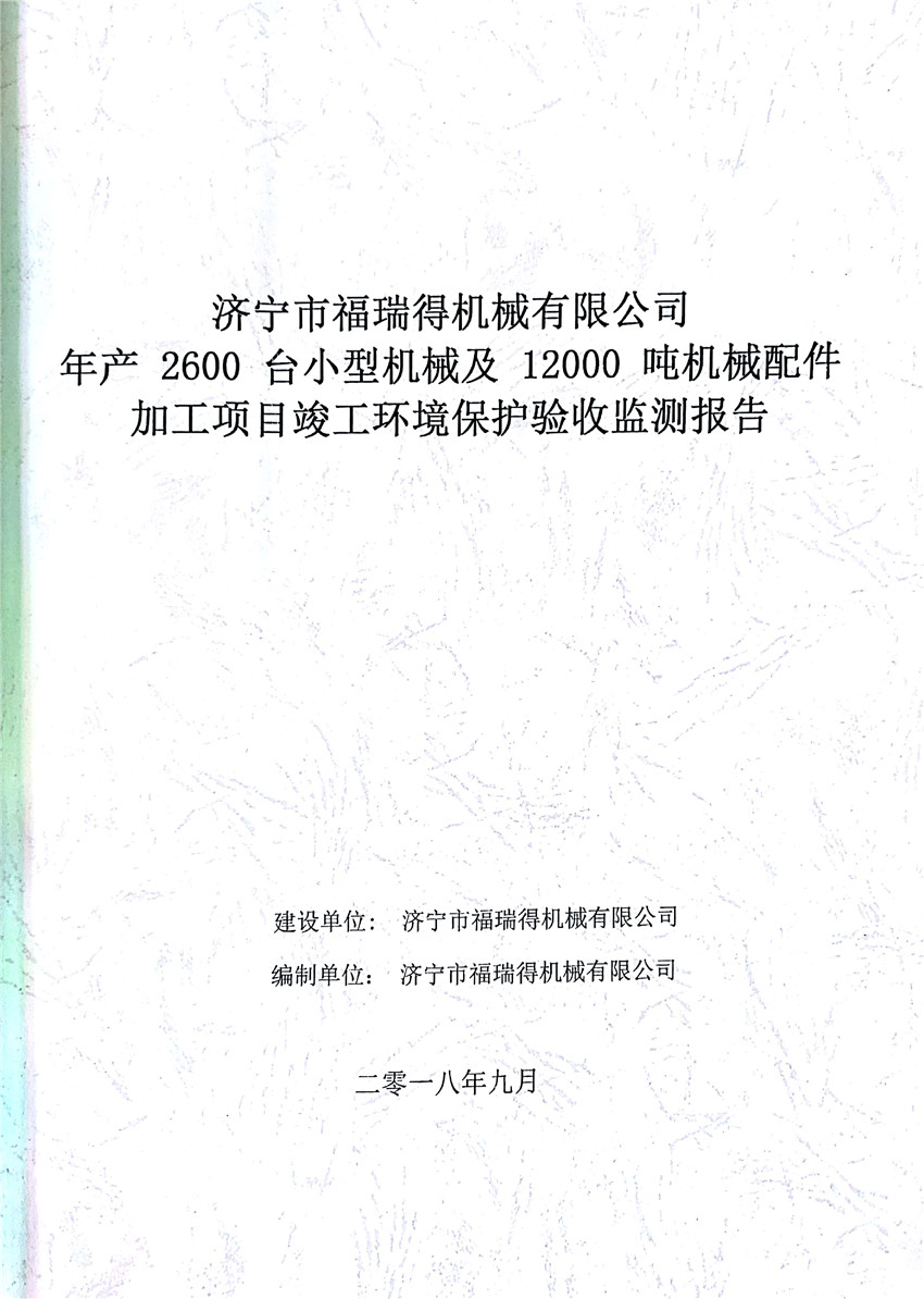 濟(jì)寧市福瑞得機(jī)械有限公司年產(chǎn)2600臺小型機(jī)械及12000噸機(jī)械配件加工項目(廢氣、廢水)竣