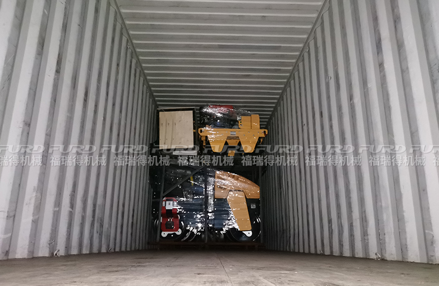 9月11日,福瑞得機(jī)械5臺(tái)手扶雙鋼輪壓路機(jī)和2臺(tái)座駕壓路機(jī)裝車出口印度。