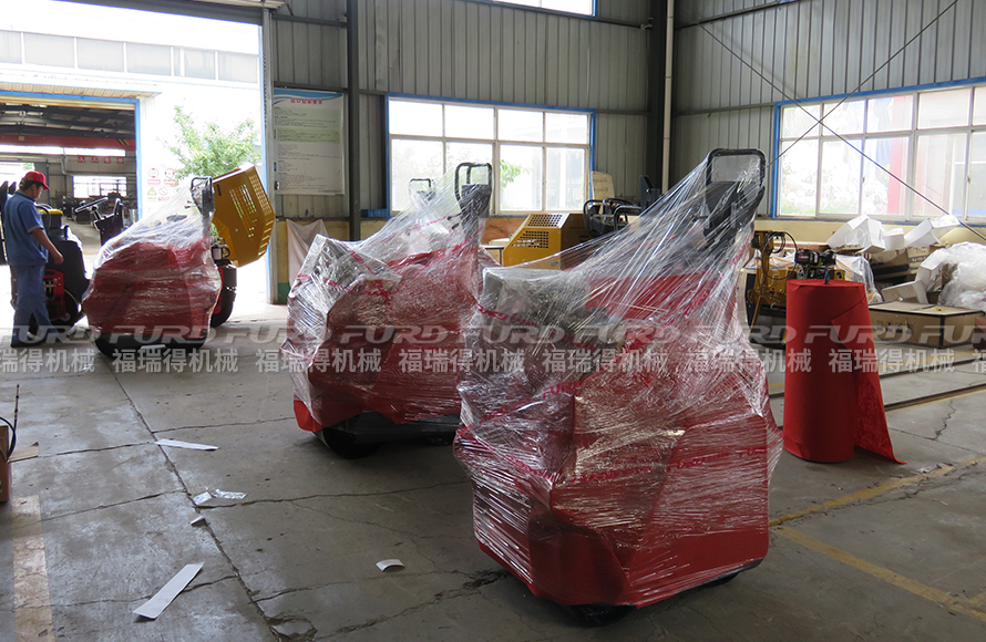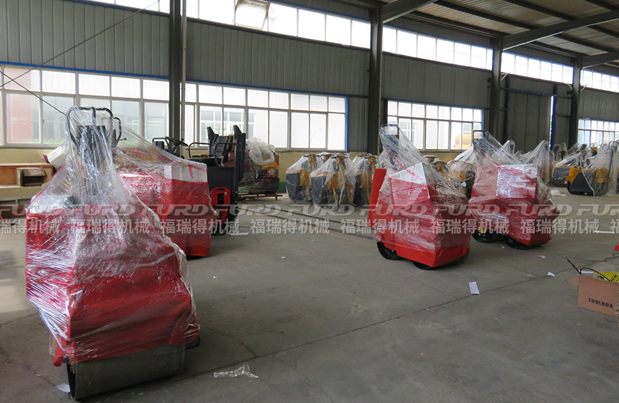 福瑞得4臺手扶雙鋼輪壓路機打包發(fā)往菏澤市