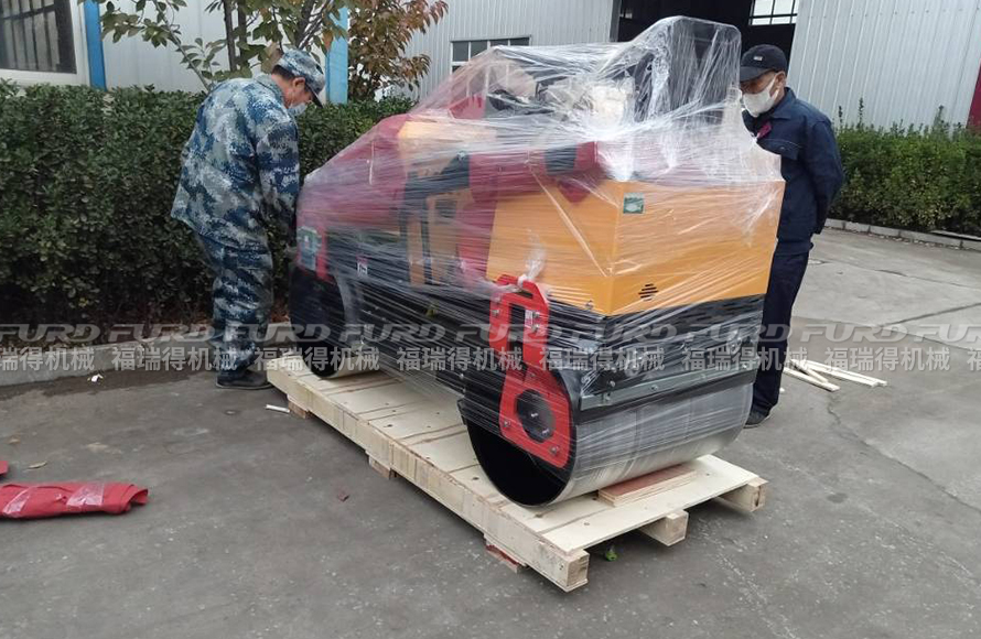 福瑞得1臺雙鋼輪壓路機(jī)打包發(fā)往菏澤