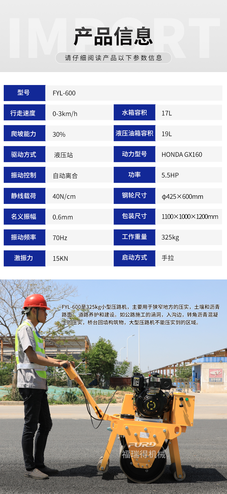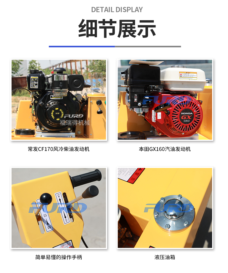 主要用于溝渠基礎(chǔ),道路,體育場地的壓實(shí)整平,也可用于壓實(shí)瀝青表面的作業(yè)。