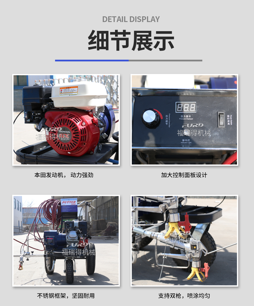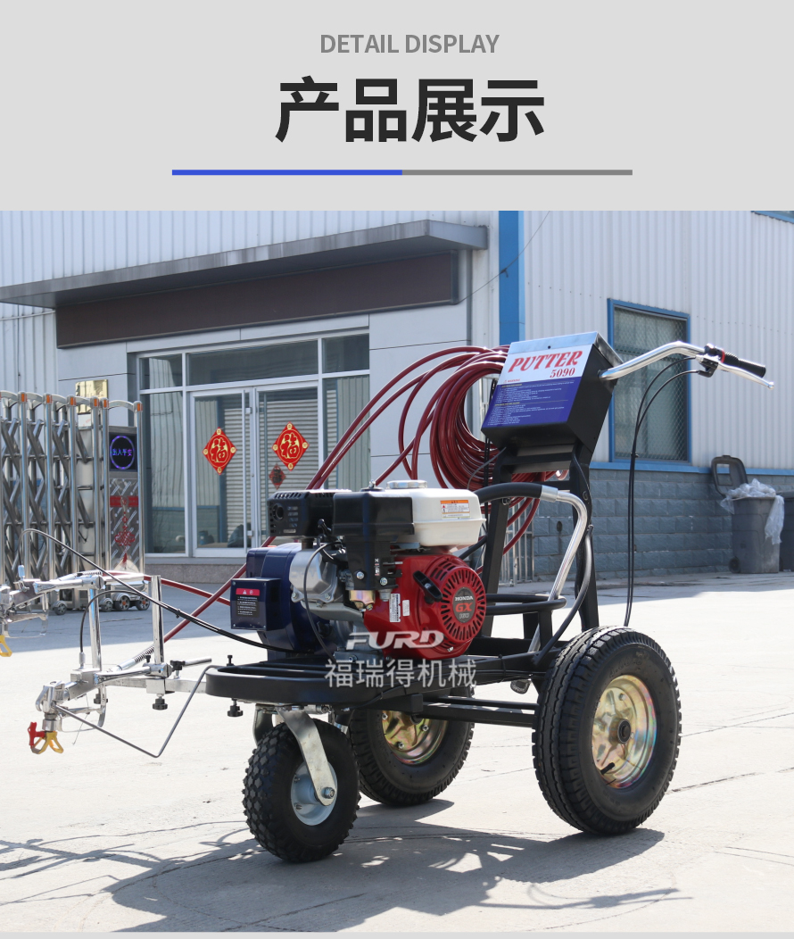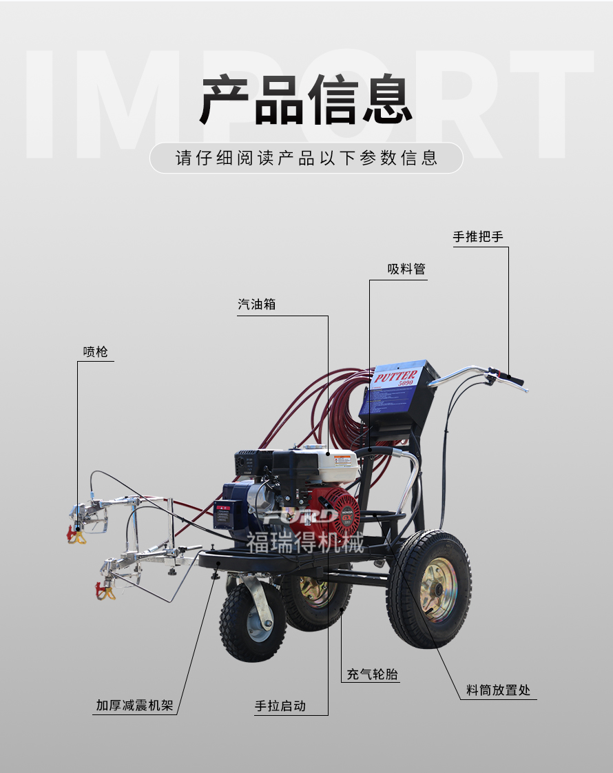 小型手推式道路劃線機(jī)是一種在道路、停車場(chǎng)、廣場(chǎng)和跑道等平整地面上劃出不同約束、指引和警示等規(guī)則限制標(biāo)志的路面施工機(jī)械。最常見(jiàn)的就是在馬路上劃斑馬線,在路上劃車庫(kù)線、停車線等等應(yīng)用于小型工程、短途施工,活動(dòng)方便,靈活操作。