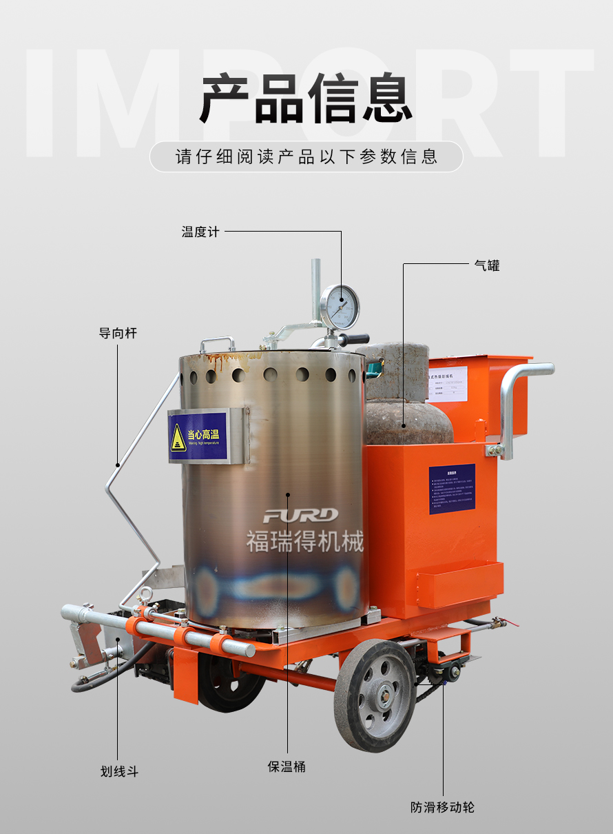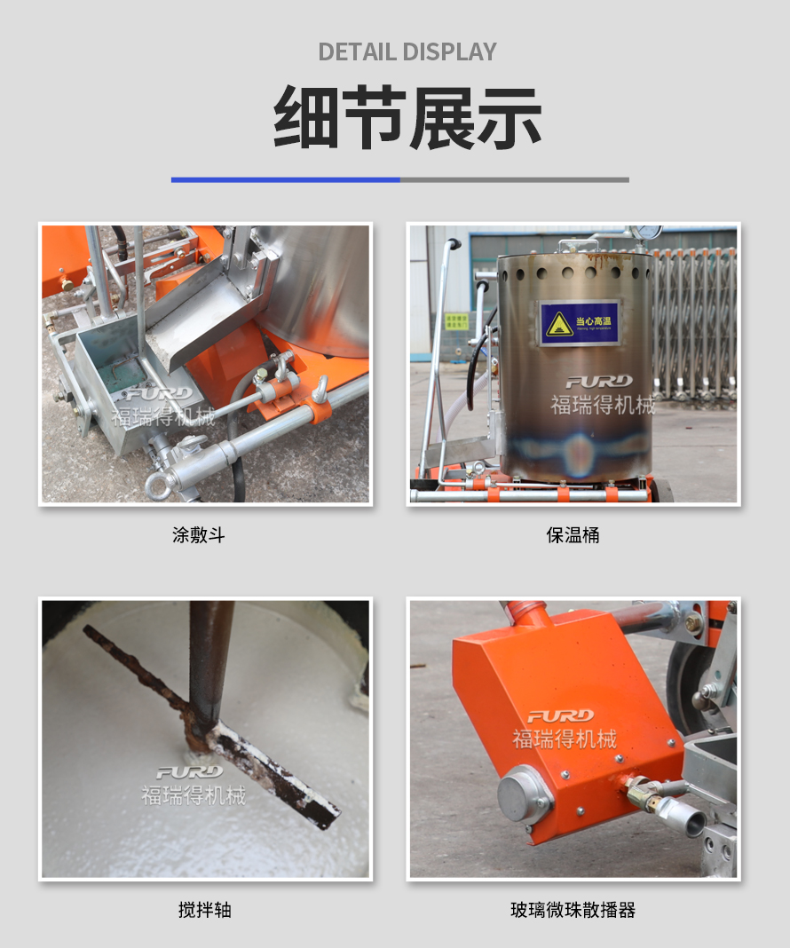 應(yīng)用于道路、高速公路、停車場、廣場和跑道的在平整地面上劃出不同約速、指引和警示等規(guī)則限制標(biāo)志的路面施工機(jī)械。