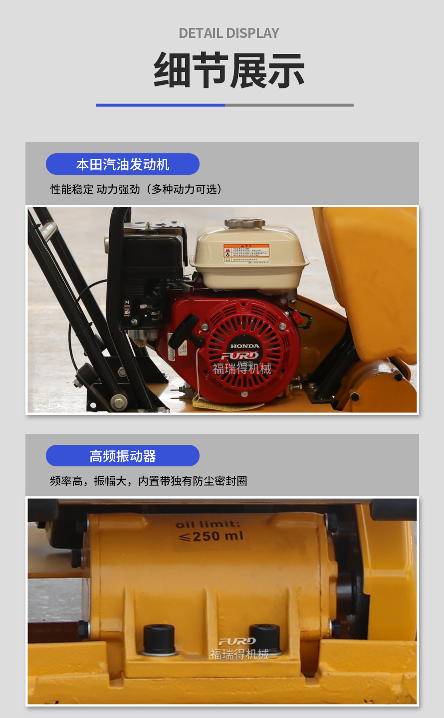 適用于路基邊緣、橋涵、管道、溝槽底部等狹長(zhǎng)地帶的壓實(shí)。 本田汽油動(dòng)力,名牌品質(zhì)保證。