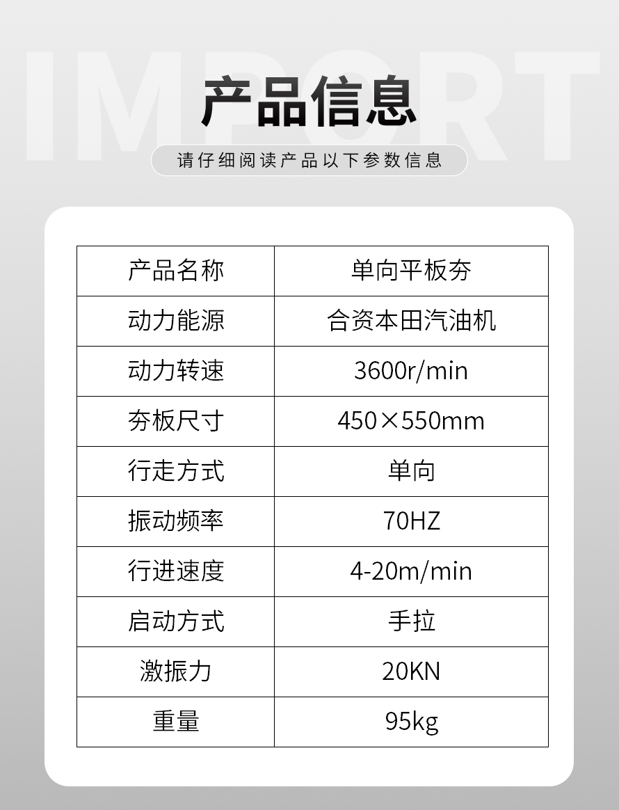 單向汽油平板夯
