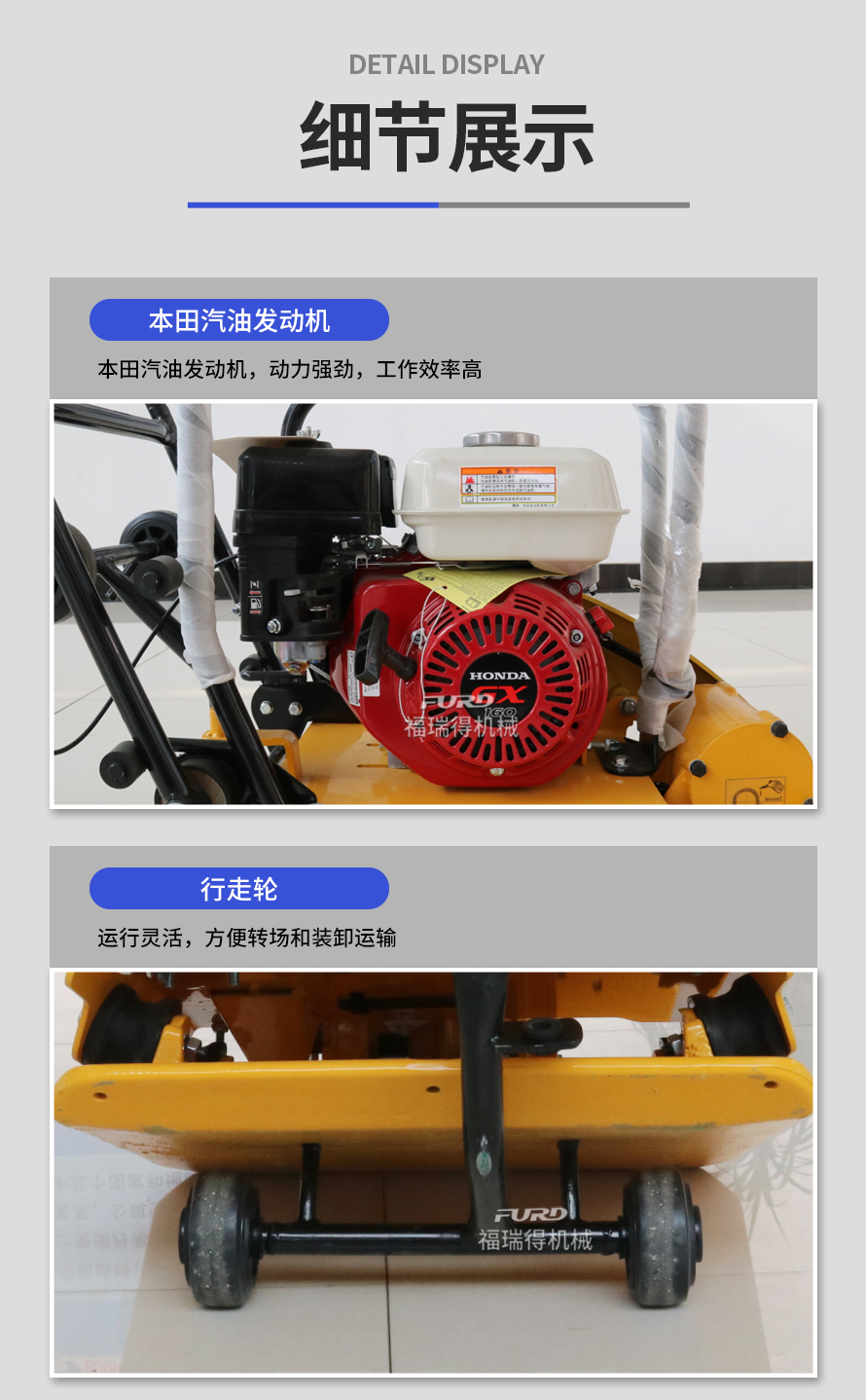 適用于路基邊緣、橋涵、管道、溝槽底部等狹長(zhǎng)地帶的壓實(shí)。 本田汽油動(dòng)力,名牌品質(zhì)保證。